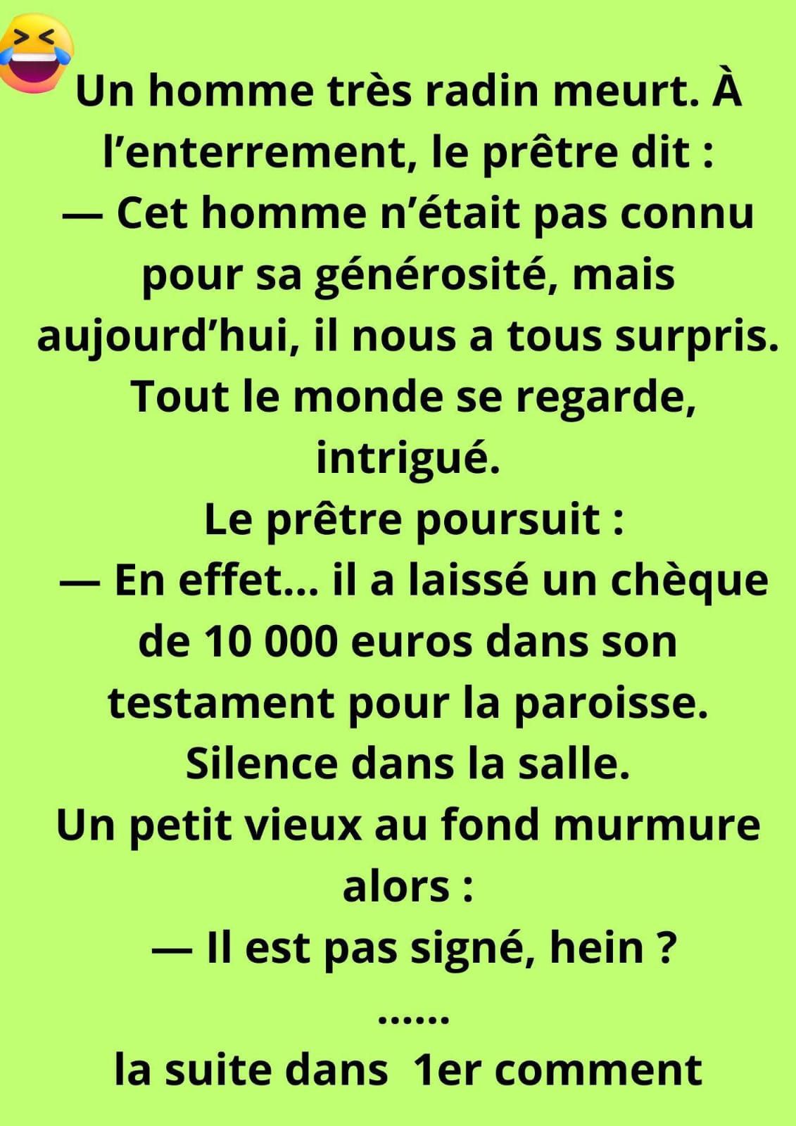 Un homme très radin meurt. À l’enterrement, le prêtre dit :