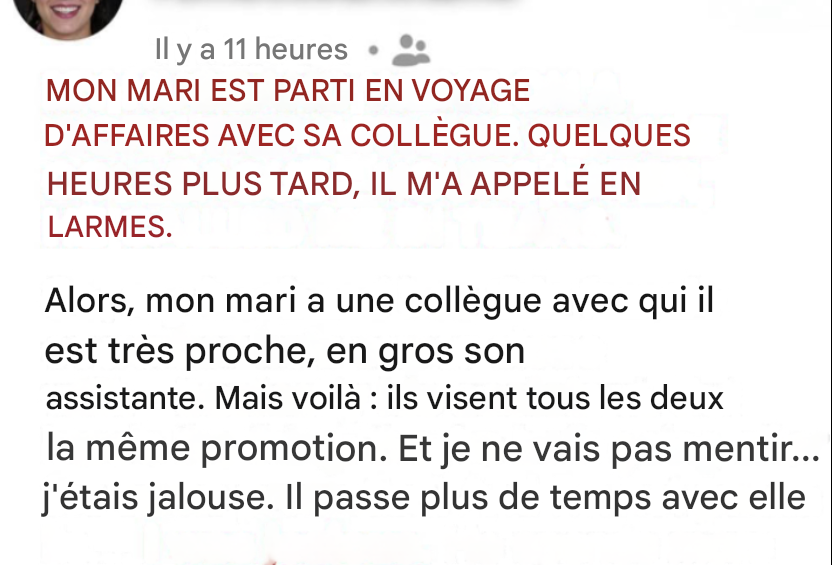 Un jour, en parcourant des e-mails, je suis tombée sur une réservation d’hôtel qui ne correspondait pas à ce que mon mari m’avait expliqué. Plutôt que de réagir sous le coup de l’émotion, j’ai préféré prendre du recul. J’ai emmené notre fils chez ma mère, pensant que la distance m’aiderait à y voir plus clair.