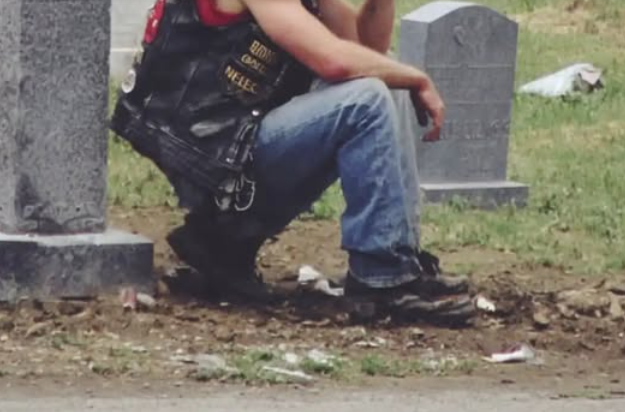 À 14 heures précises, une Harley noire apparaissait à l’entrée du cimetière. Le bruit grave du moteur résonnait entre les vieux arbres, puis s’éteignait dans un silence presque solennel.