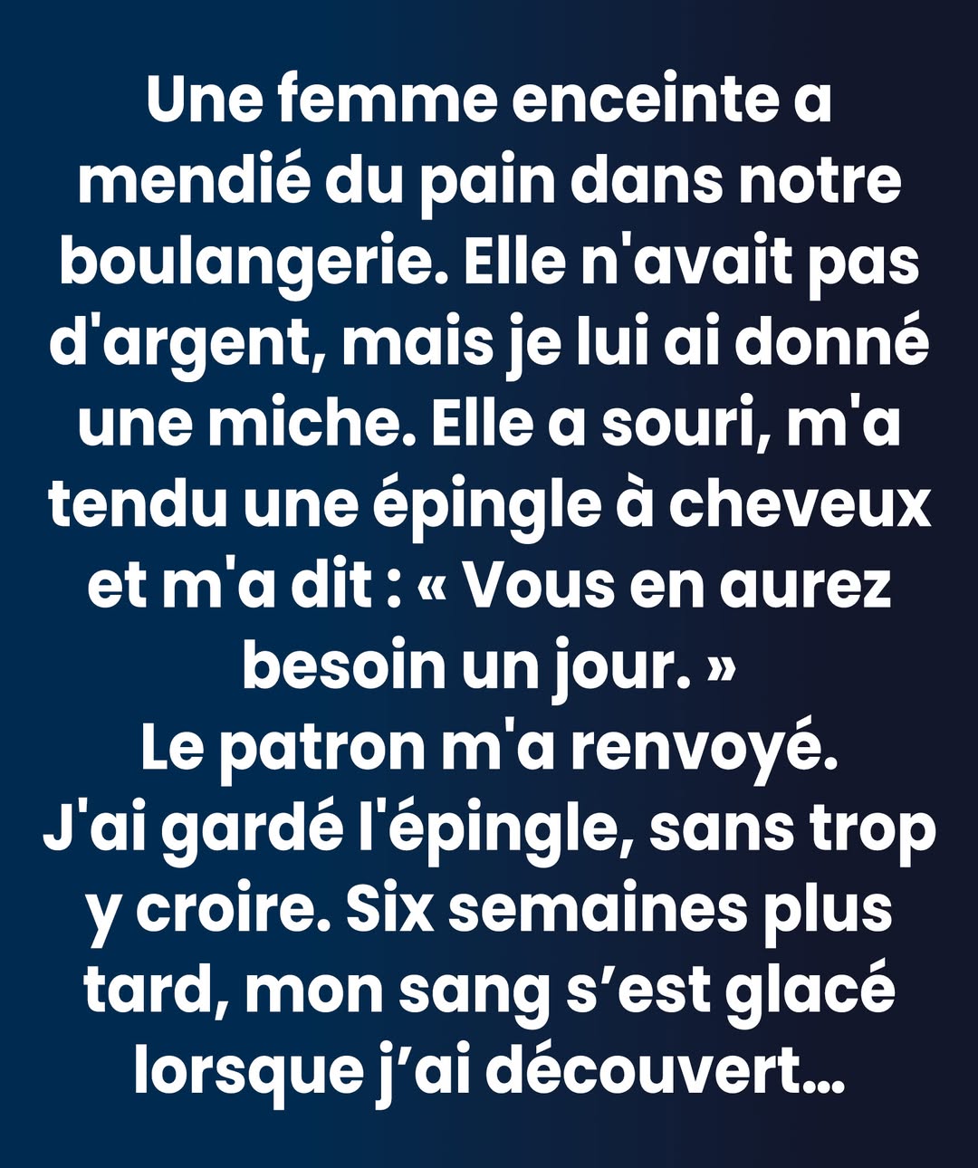 Ce matin-là, je travaillais comme d’habitude dans la boulangerie. L’odeur du pain chaud remplissait l’air, les clients entraient et sortaient, pressés, absorbés par leur routine. Rien d’inhabituel. Rien qui laissait présager que quelque chose d’étrange allait se produire.