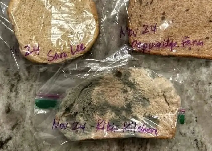 Depuis le 24 novembre, elle a placé des tranches de différents pains afin d’observer l’évolution des moisissures, et les résultats ont été surprenants.