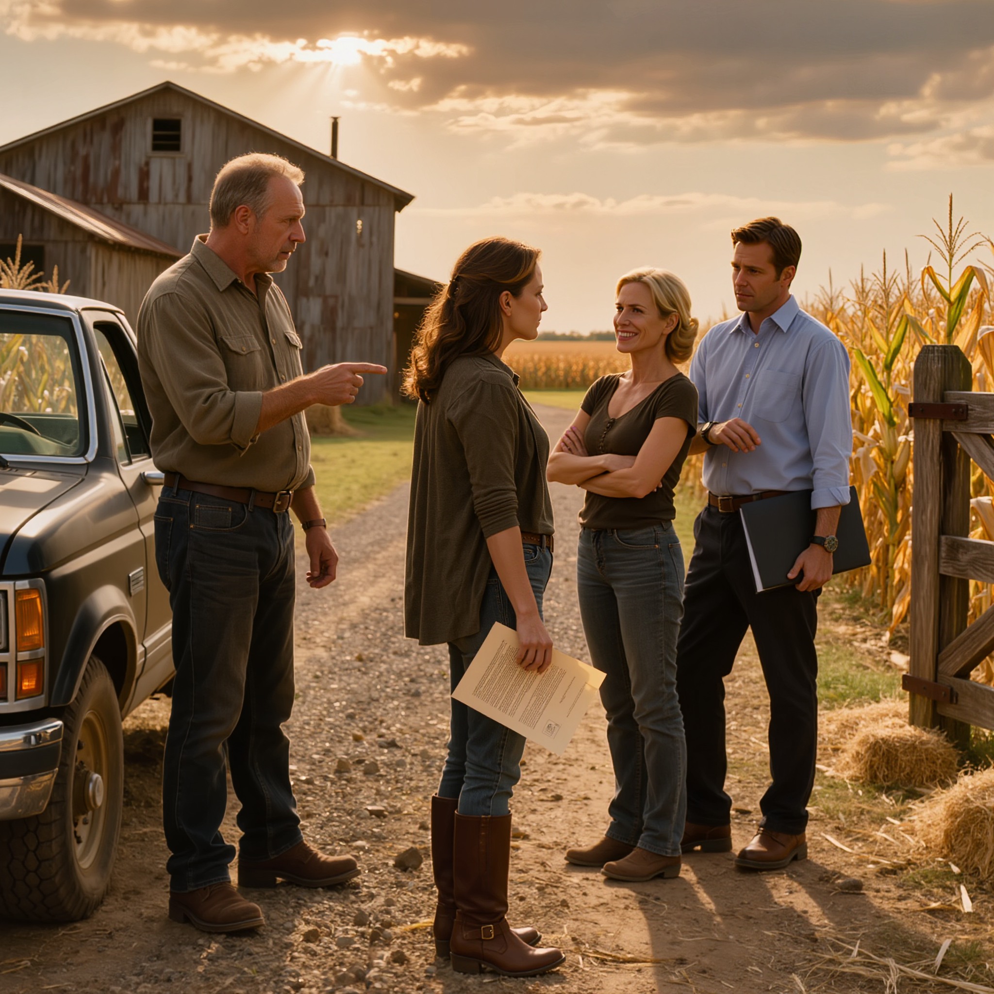 Derrière eux, un homme en chemise propre tenait un dossier et jetait sans cesse des coups d'œil à sa montre, comme si la vente de la ferme familiale n'était qu'un rendez-vous de plus. Je n'ai pas crié. Je n'ai pas demandé pourquoi d'une voix brisée. J'ai juste cligné des yeux et dit : « Vous l'avez vendue alors que la succession de grand-père n'est même pas réglée. »