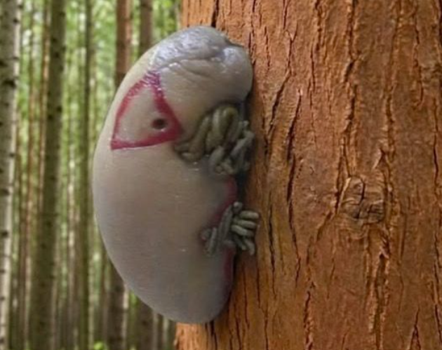 Au premier regard, cette chose ne ressemble à rien de familier. Sa forme est lisse, presque brillante, avec un aspect légèrement translucide. Elle semble collée au tronc de l’arbre, comme si elle en faisait partie.