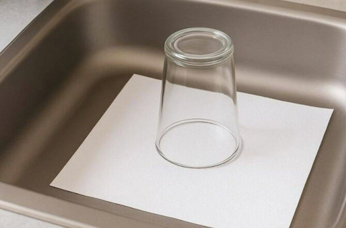 Placez une feuille de papier absorbant sur la bonde, puis recouvrez-la d'un verre retourné.